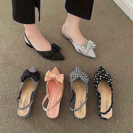 French thick heel bowknot sandals
