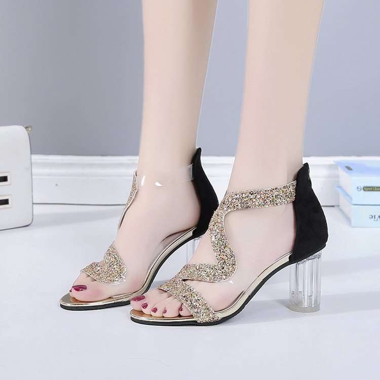 Transparent crystal heel sandals